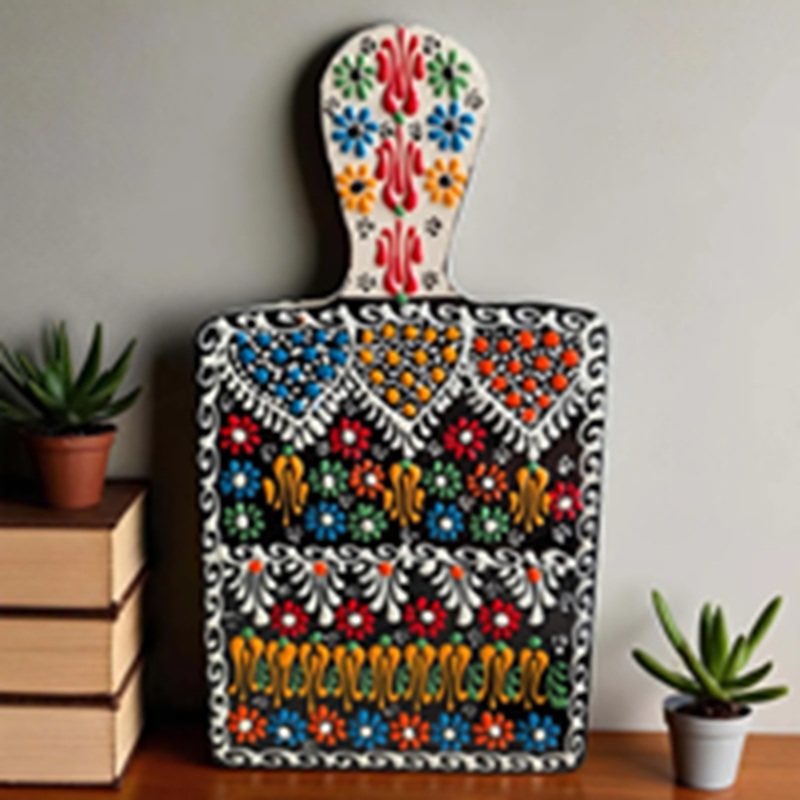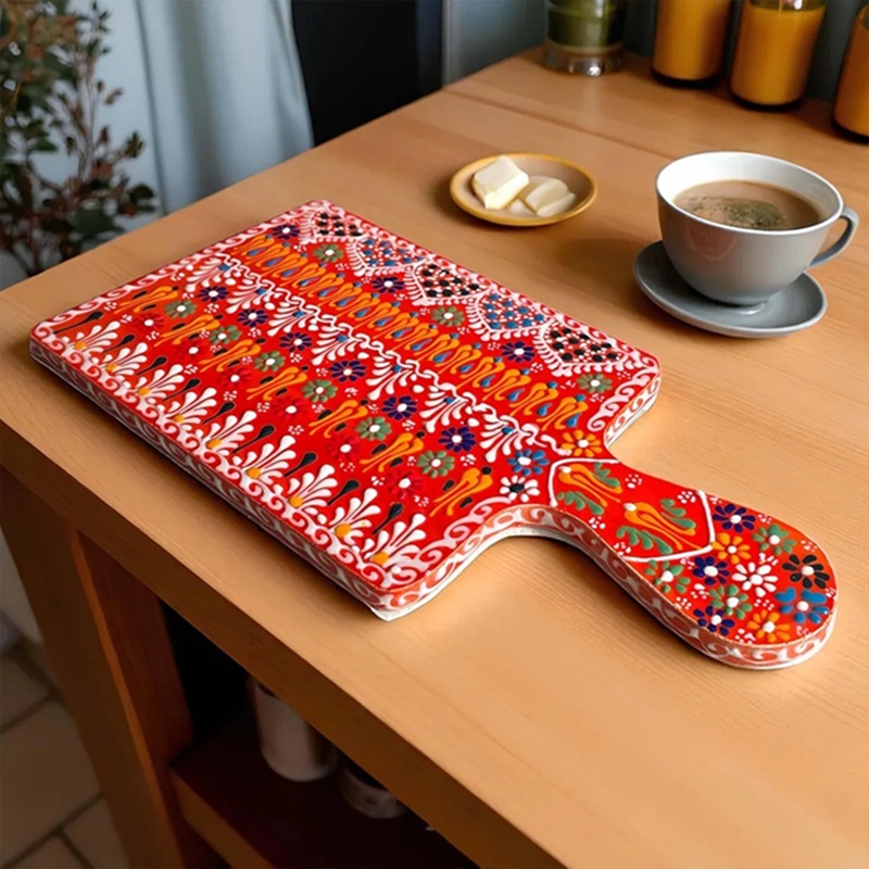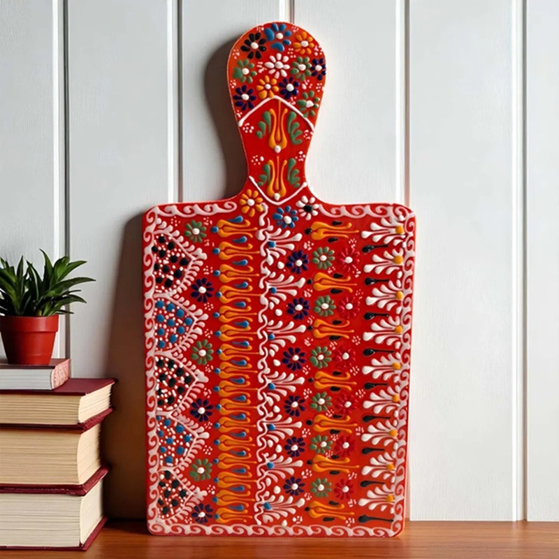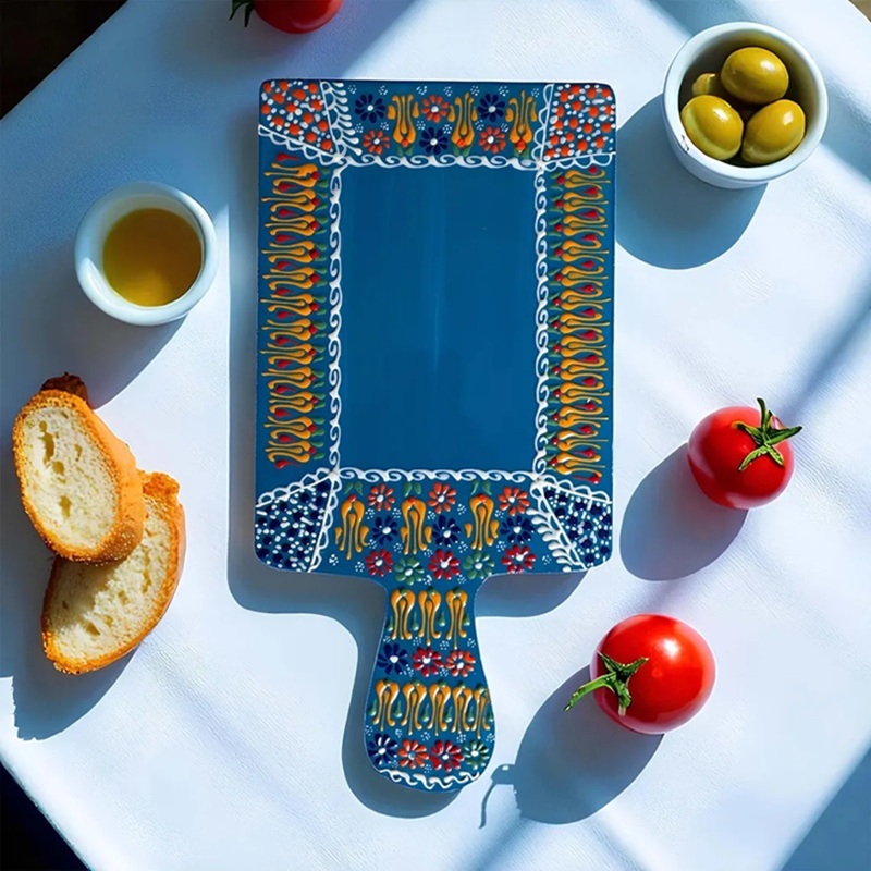 Its rectangular form makes it perfect for arranging cheeses, fruits, breads, and charcuterie, while the glossy finish highlights its artistry. More than just a kitchen tool, it’s a statement piece of cultural heritage and style.