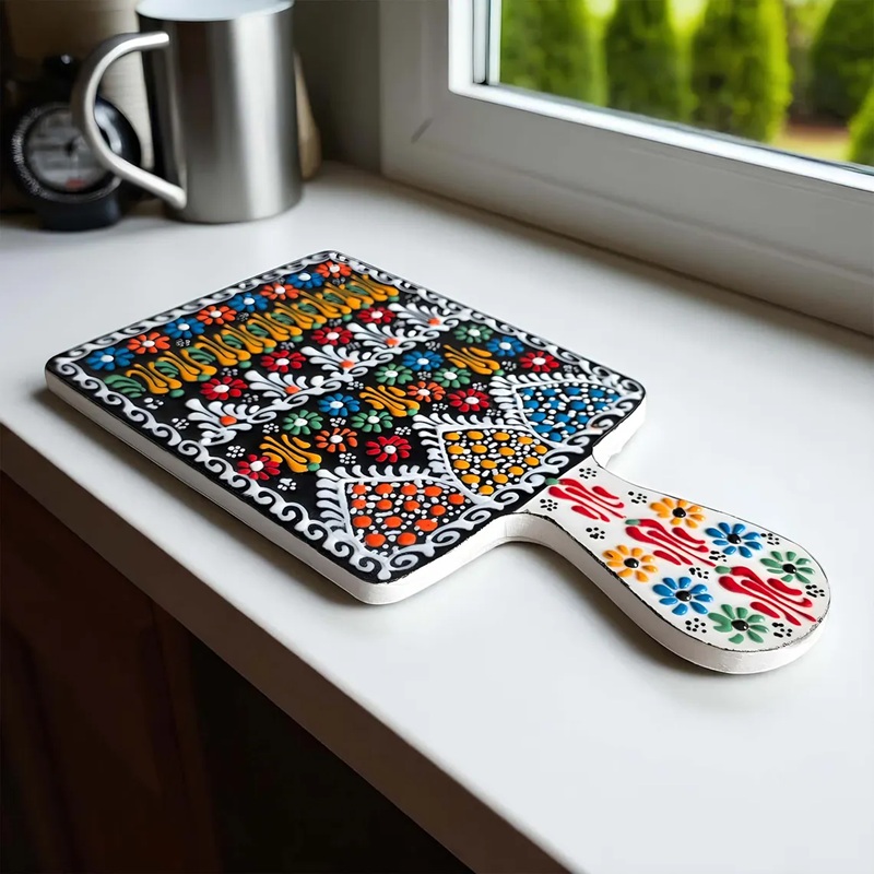 Craftsmanship: Each ceramic board is handmade and individually painted. Slight variations in color and pattern make every piece one of a kind.