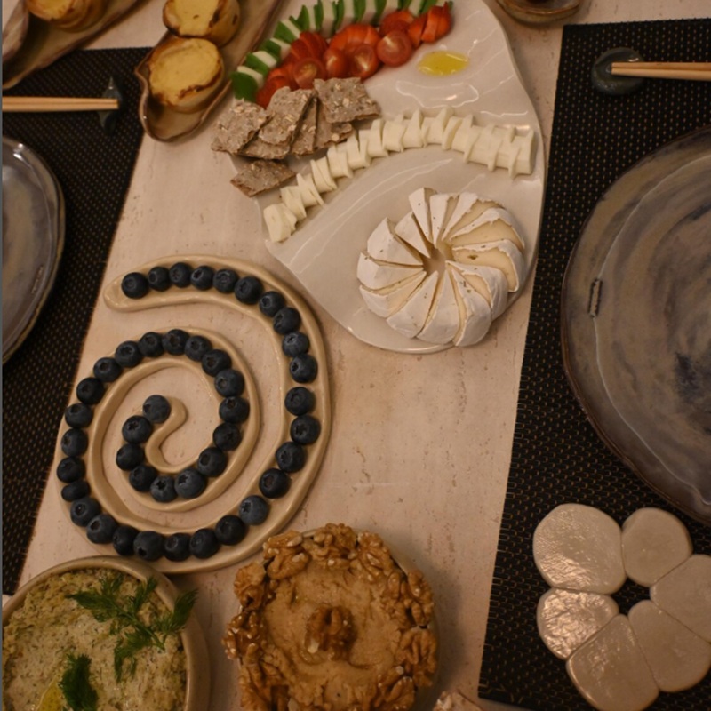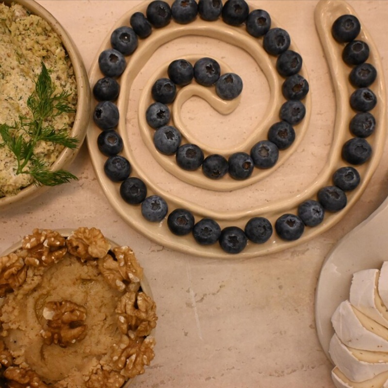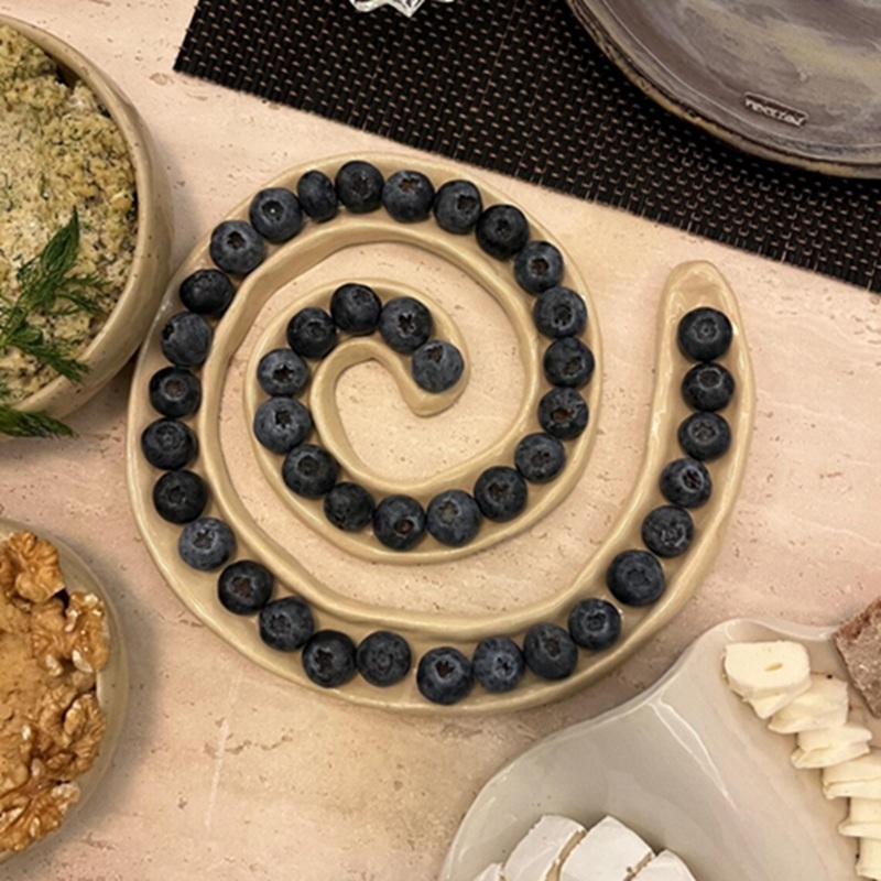 صينية تقديم فريدة وأنيقة للزيتون، والتوت الأزرق، والفراولة، والكرز، والوجبات الخفيفة... إلخ. كما أنها تُضفي متعةً للأطفال عند تناول البسكويت المرتب على شكل ثعبان.
