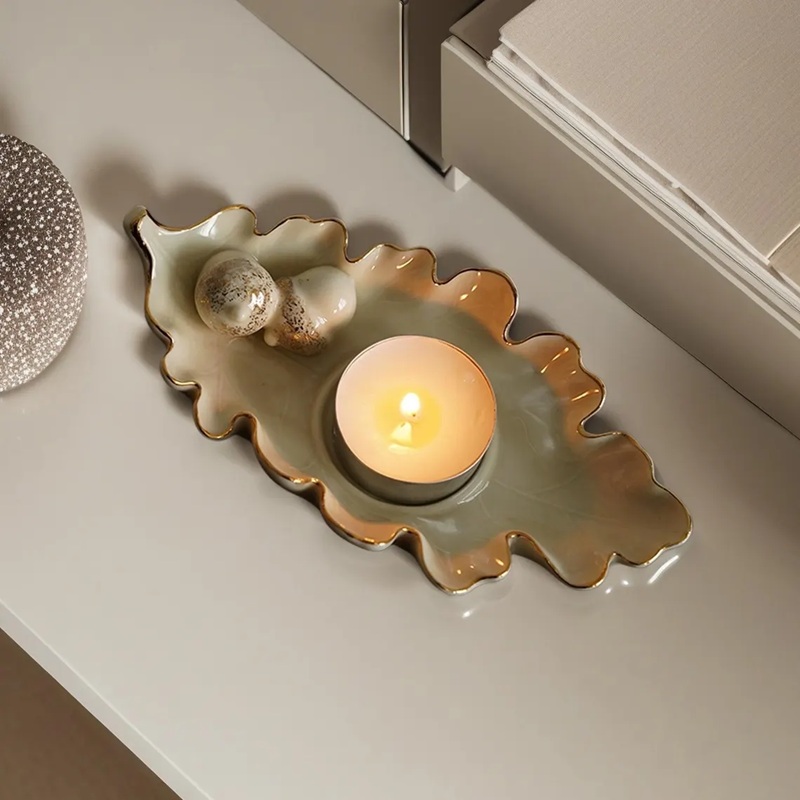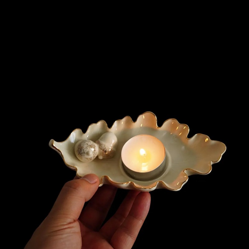 ChinaLight Luxury Leaf-Shaped Ceramic Tealight Holder