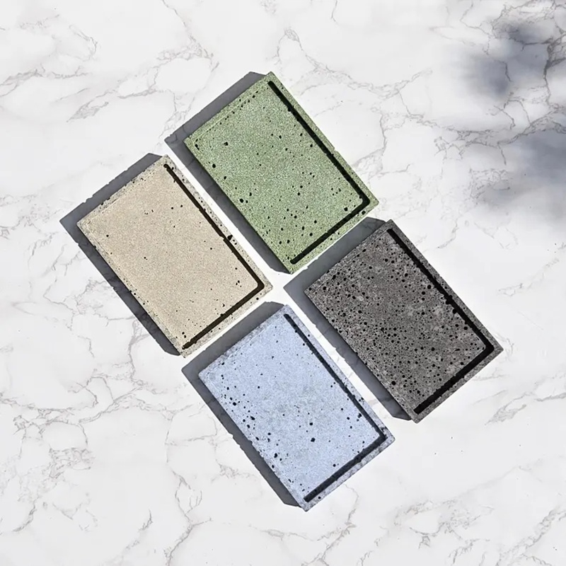 Tiny air bubbles form during the natural foaming process, creating a tactile, volcanic-stone texture similar to basalt.