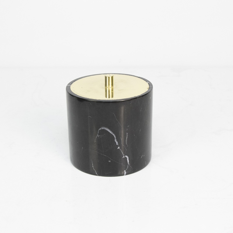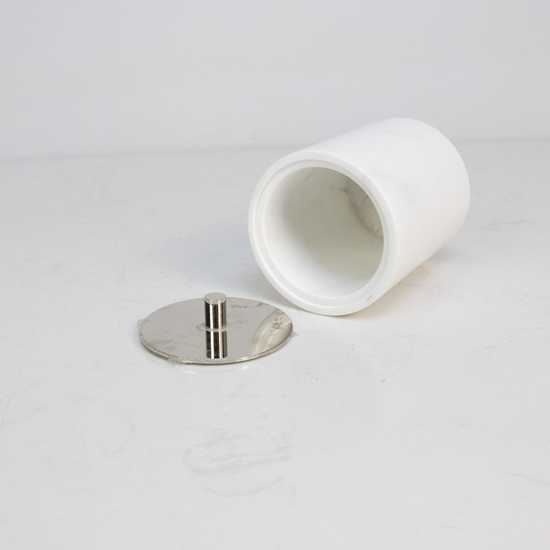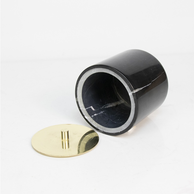 جرة التوابل الرخامية المربعة مصنوعة من رخام كارارا الأبيض الطبيعي والرخام الأسود. عملية القطع والتوصيل الهندسية تُنتج شكلًا مربعًا وغطاءً دائريًا مزينًا بحلقة ذهبية، مما يُضفي لمسةً من الأناقة والرقي.