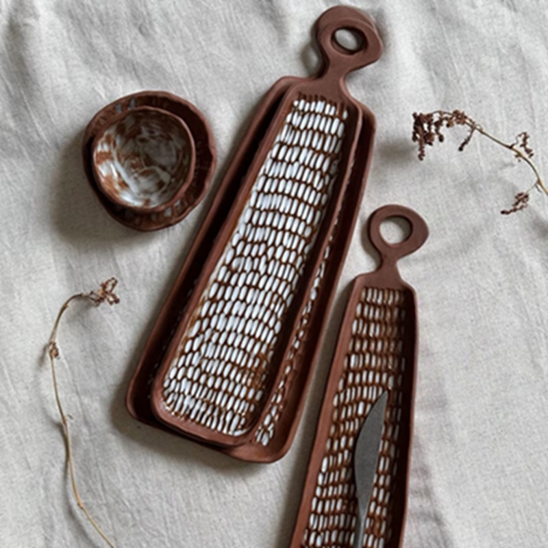 Craftsmanship: Handcrafted from red stoneware clay, these ceramic serving trays showcase unique textures, adding a touch of artistry and rustic elegance to any gathering