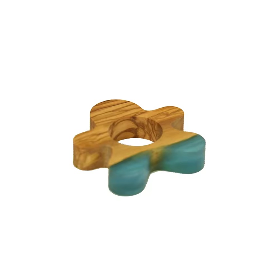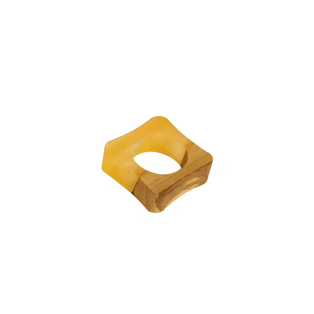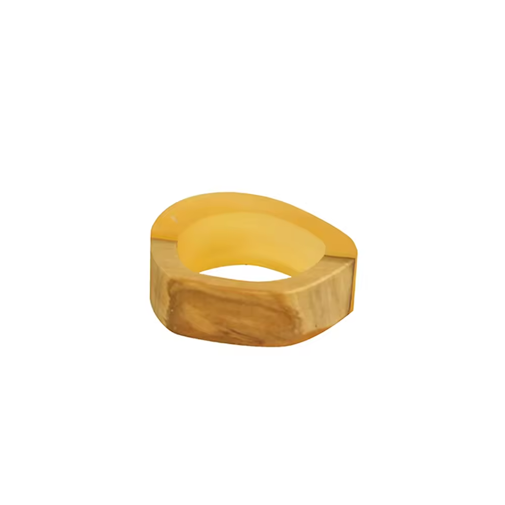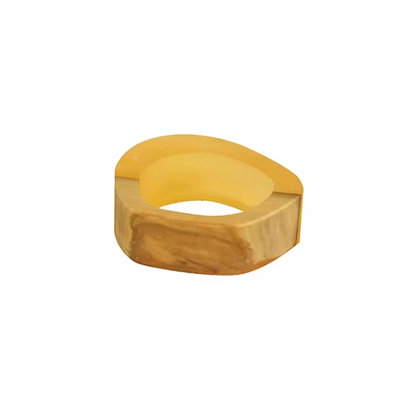 كل حلقة من حلقات المناديل تُعدّ تحفة فنية بتصميمها المتقن وحرفيتها العالية. يضفي مزيج الراتنج والخشب تأثيراً بصرياً مذهلاً، مما يجعل هذه الحلقات إضافة رائعة لديكور غرفة الطعام.